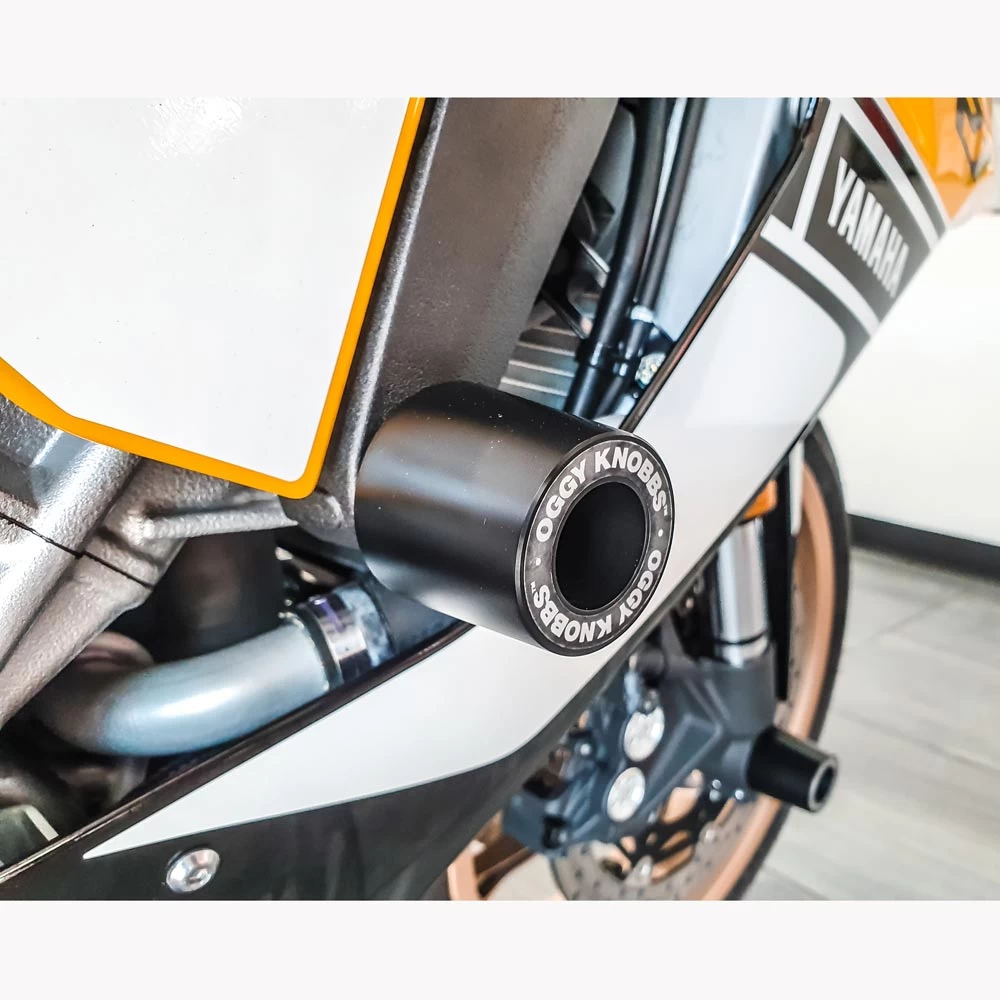 Oggy Knobb Frame Sliders are designed to reduce damage to your motorcycle from impact and abrasion by the road surface in an accident.
